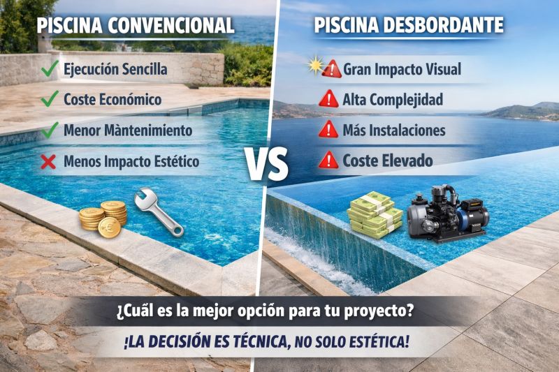 🏊♂️ Piscina convencional vs piscina desbordante